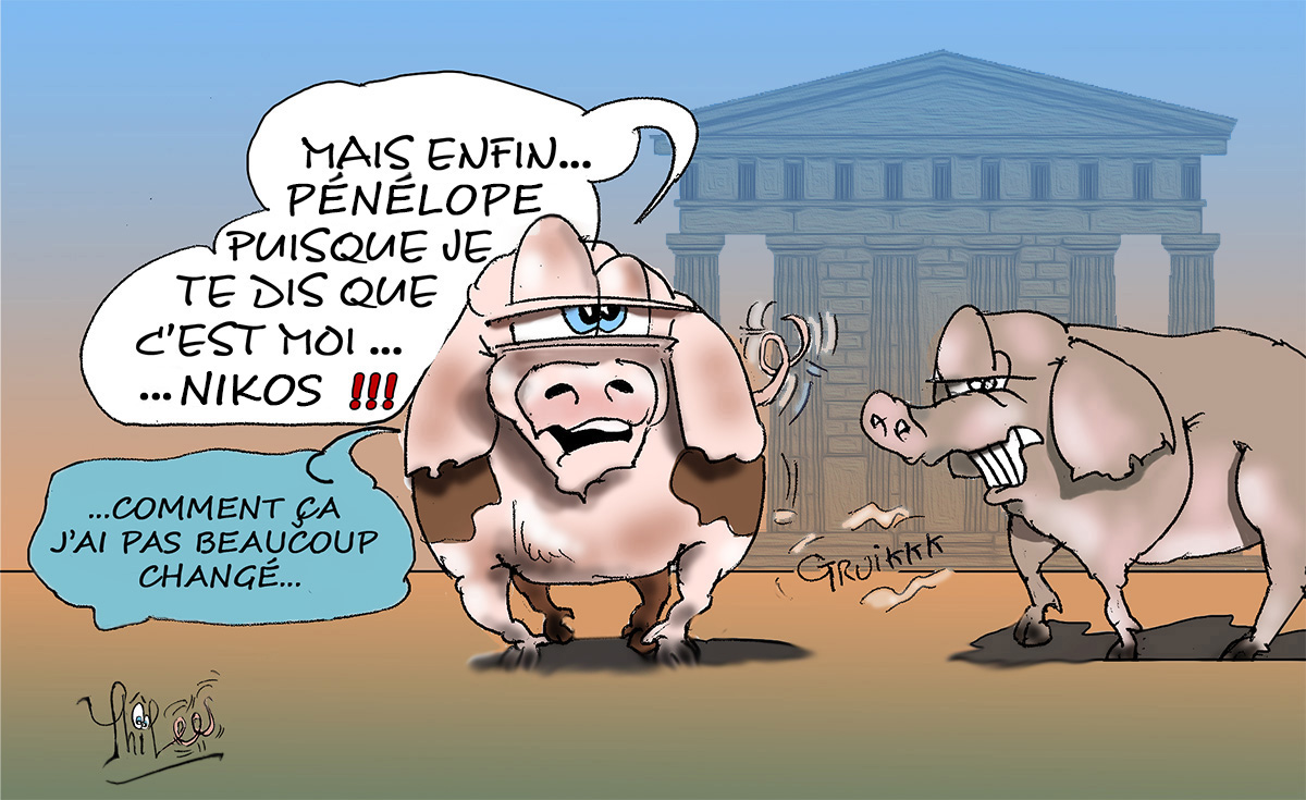 Odysseus, der mit den schlimmsten Unglücken zu kämpfen hat, die ihm geschickt werden, damit er nie wieder nach Hause zurückkehrt (warum, wird später erläutert), macht eine sehr lange "Pause" in den Armen von Circe, "Κιρκη"/ "Kιrkè", das bedeutet " raubvogel ", die Magierin dite "εὐπλόκαμος" / euplokamos, "mit den schönen Locken" ... und mit gefürchteten Giften.
