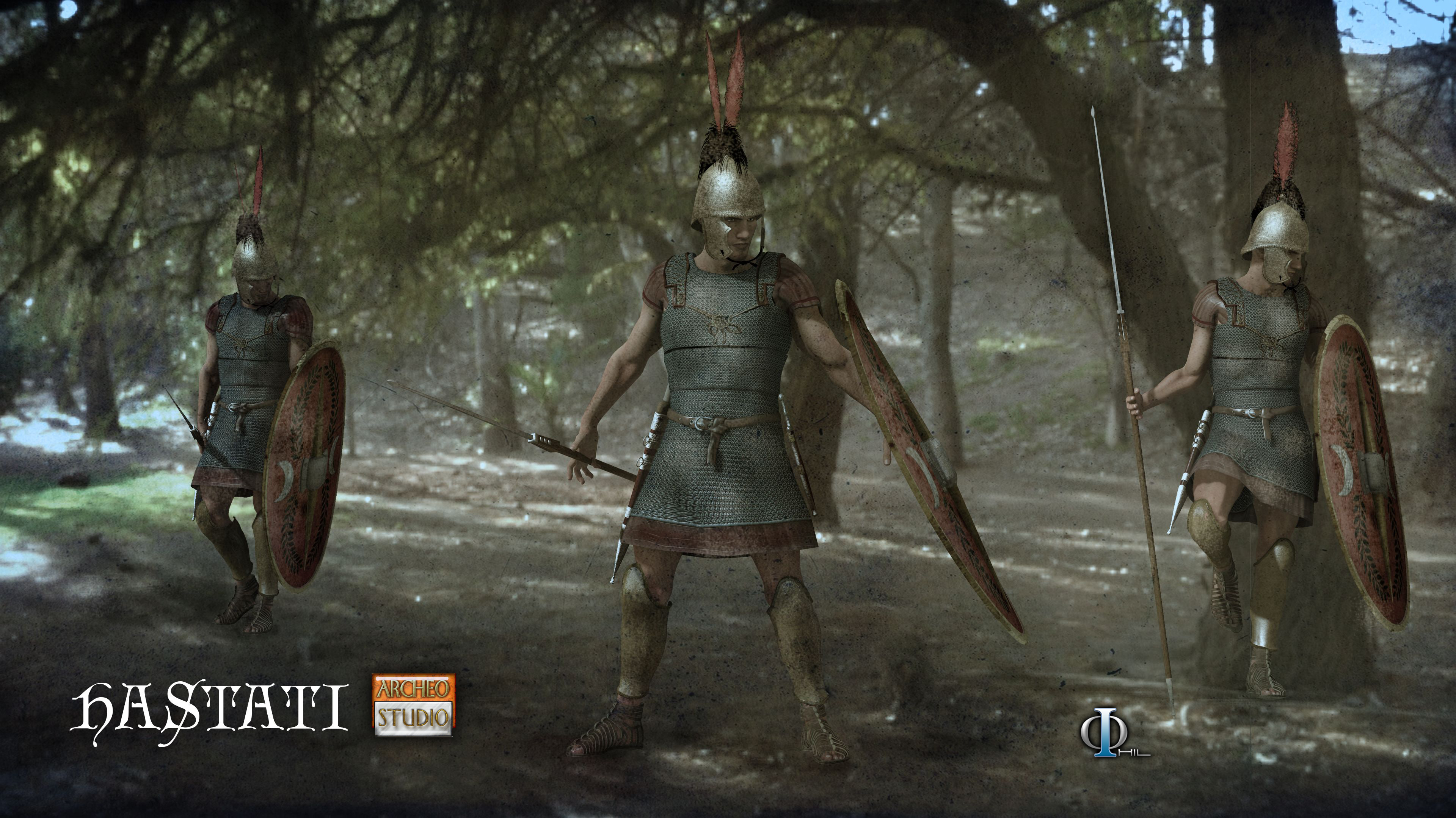 He commanded a hundred or so "Hastati" who trained twice a day, whatever the weather. These are the Legion's youngest recruits, athletic and therefore always placed in the front line, fighting with the "Hasta" (spear) in defense and the "gladius" (sword) in melee. Their feathered helmets were paradoxically derived from Celtic models.
